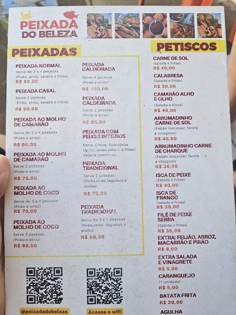 Welcome to Peixada do Beleza, your go-to destination for a delightful seafood experience in João Pessoa, Brazil. Located conveniently on Rod. Min. Abelardo Jurema Araujo, Peixada do Beleza is renowned for its warm, family-friendly atmosphere and impeccable service. The menu shines with its signature Peixada Casal, featuring a generous serving of fresh filé de serra, aromatic pirão, fluffy rice, and crispy batatas fritas—all for an incredibly reasonable price of just R$50. Guests rave about the efficiency of the service and the quality of the dishes, making it a perfect spot for a delightful meal.